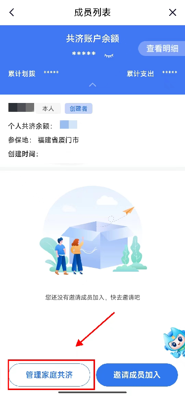 参加福建省内基本医保的参保人(参保状态需为“正常参保”)可创建家庭共济账户,将个人账户资金划拨至家庭共济账户,并添加参加福建省内基本医保的配偶、父母、子女、兄弟姐妹、祖父母、外祖父母、孙子女、外孙子女等直系亲属、近亲属(参保状态需为“正常参保”)为共济账户成员。