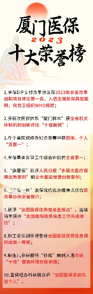回望2023,这一年,厦门市医保局坚持以习近平新时代中国特色社会主义思想为指导,全面学习贯彻落实党的二十大精神,认真贯彻落实国家、省、市工作部署,以拼的姿态、抢的劲头、实的作风,深入推动主题教育和“三争”行动走实见效,用心用情解决群众“急难愁盼”,兜稳兜牢民生底线,积极推动医保实事与广大群众健康需求达到“双向奔赴”,为厦门努力率先实现社会主义现代化贡献“医保力量”。